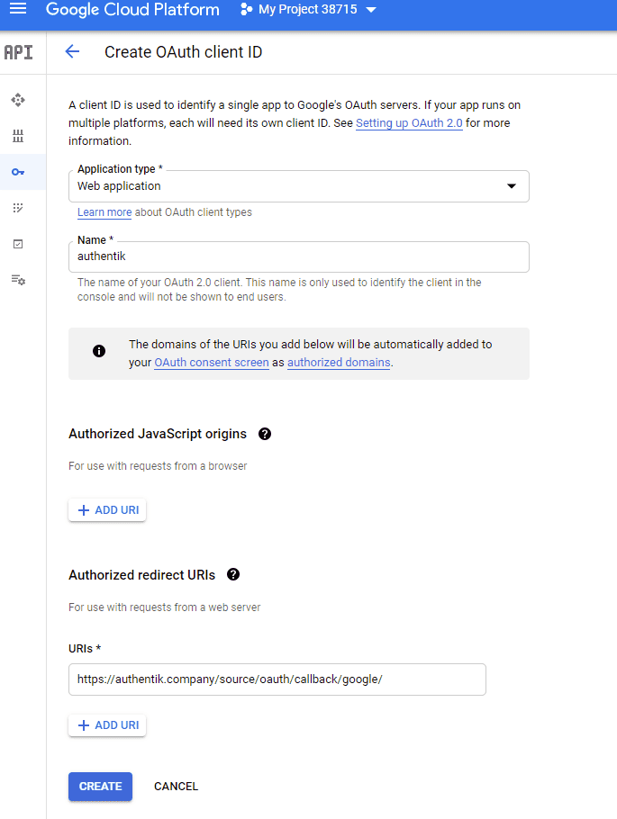 To integrate Google with authentik, you need to create a new project and OAuth credentials in the Google Developer Console.